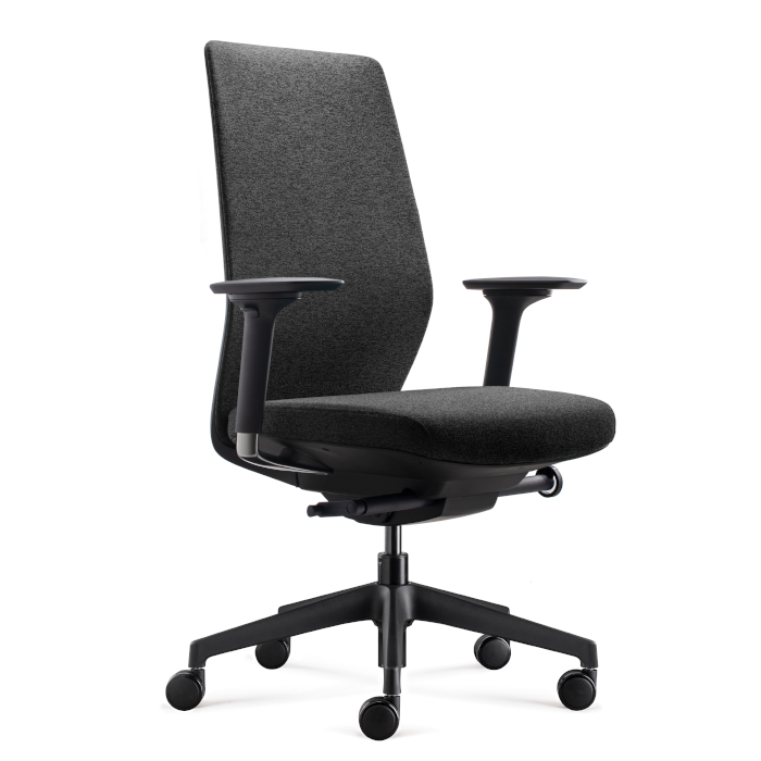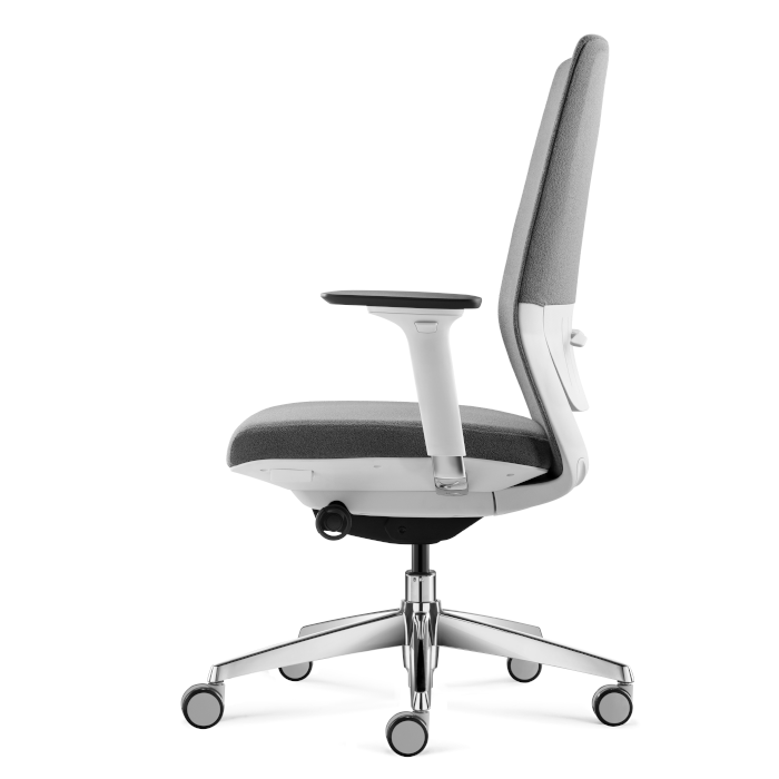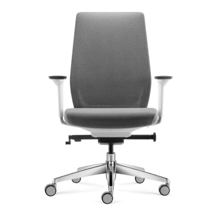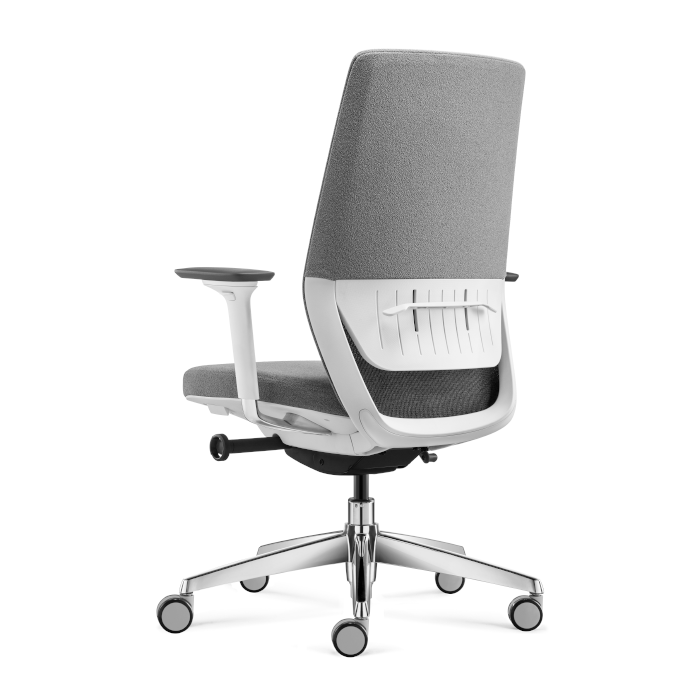Silla gerencial con un diseño altamente refinado. Su espaldar completamente tapizado tiene internamente un soporte lumbar graduable que permite gran ergonomía y confort . Con partes en aluminio inyectado y acabados premium