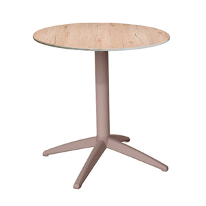 Su diseño combina resistencia, ligereza y estilo contemporáneo, ideal para cafeterías, terrazas o zonas de descanso. Fabricada con tablero enchapado en alta presión o melamina, con cantos inyectados en polipropileno, garantiza durabilidad y fácil mantenimiento.