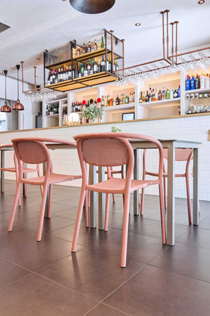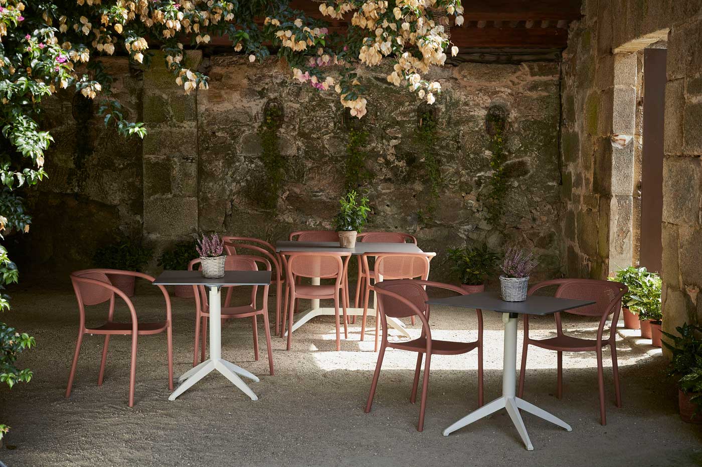 Su diseño apilable y envolvente ofrece comodidad y versatilidad, siendo perfecto para espacios interiores y exteriores en contextos de hospitalidad, corporativos o domésticos.
