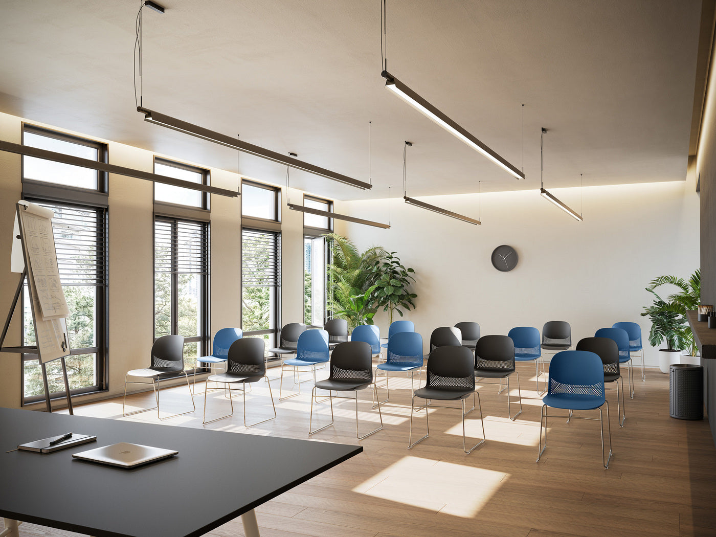 Es una silla multipropósito que combina diseño, comodidad y funcionalidad, ideal para oficinas, coworking y cafeterías.