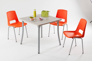 Su diseño clásico y atemporal combina funcionalidad, comodidad y estética, convirtiéndola en una silla multipropósito perfecta para espacios educativos, cafeterías o áreas comunes.