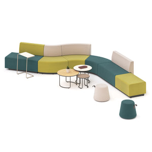 Es un sistema modular de espera activa, diseñado para crear espacios más amables, colaborativos y creativos. Su estructura flexible permite configurar múltiples composiciones, adaptándose a entornos de trabajo, áreas de descanso o zonas de interacción social.